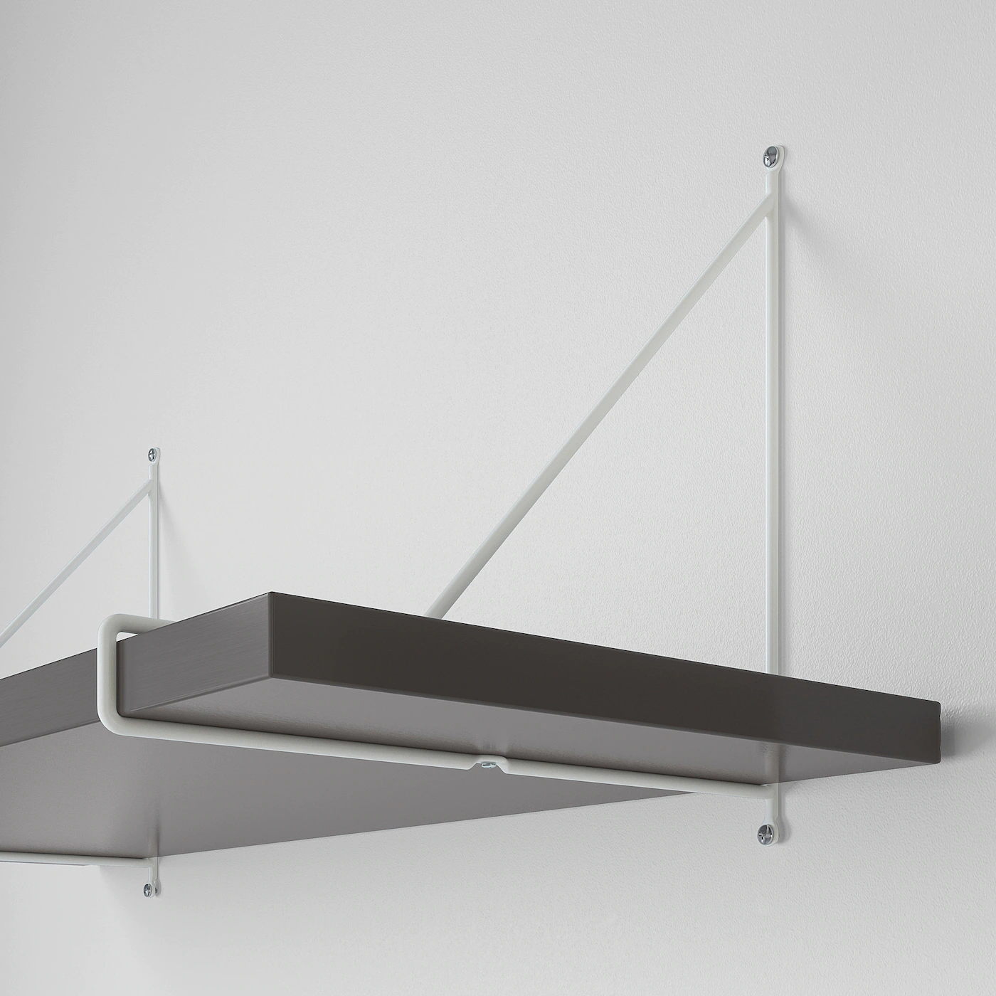 The brackets are designed to fit well together when connecting several in a larger combination. You can choose to mount the brackets above or below the shelf and thereby creating two different expressions. You only need one screw to fix two brackets together.Material